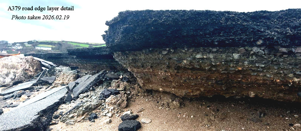 As for the A379 road there is now a splendid opportunity for archaeologists and geologists to use modern methods of dating and mineral analysis to establish a scientific record of the many layers of hardcore, and latterly tarmac, that have been laid along the road.