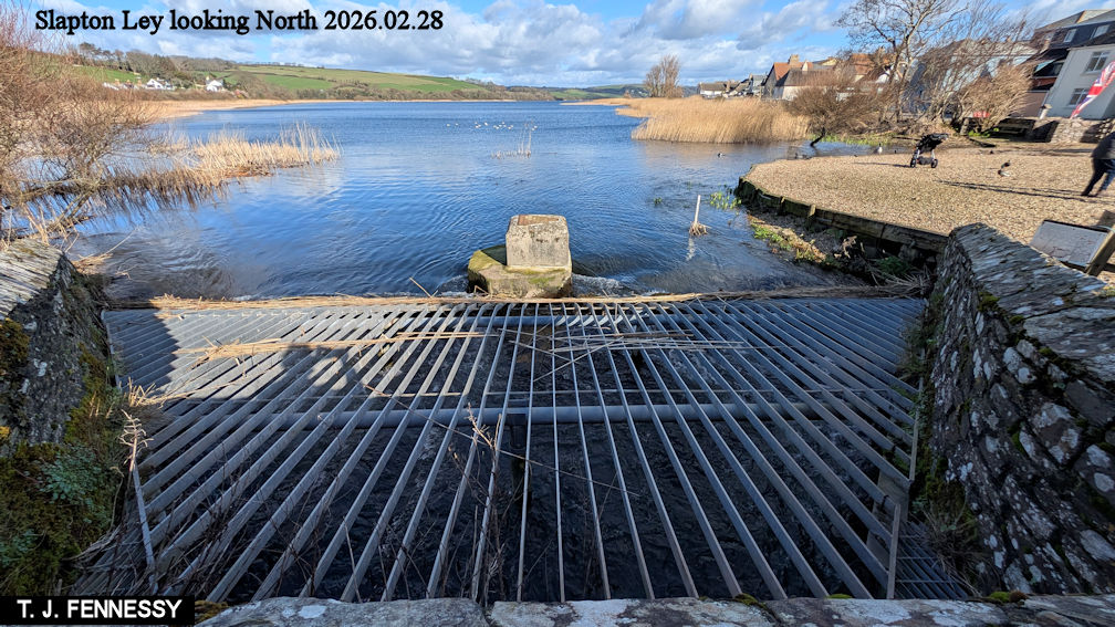 In the case of Slapton Ley it's easier to think of the Higher Ley (North) and Lower Ley (South) as two separate lakes, although now linked by an allegedly man-made channel near Slapton Bridge. The drainage basin area of the whole of Slapton Ley is 46 km2; that of the Higher ley is about four times the area of that feeding the Lower Ley. That means the fluvial inputs, water and sediment, are proportionately larger for the Higher Ley; which explains why it has been filling up with sediment more quickly. Before they became freshwater lakes they were estuaries, and possibly lagoons before that. It is clear that the slow progression of the Shingle Ridge moving inland, as sea level rose during the Flandrian Transgression, eventually blocked the valleys of The Gara river flowing into the Higher Ley, and the smaller stream valleys of the Lower Ley. That damming took many hundreds, probably thousands, of years to evolve. Various studies of the origins of the Ley have found evidence of estuarine muds in the lake beds. It is considered that today's shingle ridge was initially two shingle spits with openings to the sea at Strete Gate and Torcross. We know that both lakes now flow South to the corner at Torcross where a culvert, or pipe, allows the excess freshwater to drain to the sea. The man-made weir, now covered with a substantial metal grid, keeps the lakes at a near constant level. That level is approximately 4 metres higher than Mean Sea Level, so today sea water ingress is eliminated. Mean Sea level is the basis of Ordnance Datum, used by the Ordnance Survey of Great Britain as zero for contours and bench marks. Ordnance Datum is applicable to the whole of Great Britain and should not be confused with Chart Datum which is defined as the Lowest Astronomical Tide level for a particular locality. In the area of Start Bay Chart Datum is approximately 3 metres lower than Mean Sea Level.